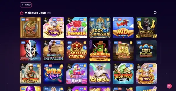 Nous proposons 14âŻ331 jeux : machines Ă sous, casino en direct, jeux de table, jackpots, titres Bonus Buy, jeux crypto, fishing et crash games. Notre plateforme est conçue pour vous aider Ă filtrer rapidement par fournisseur, fonctionnalitĂ© ou volatilitĂ©, afin de tester diffĂ©rents styles sans scroller longtemps. Si vous jouez principalement aux machines Ă sous Run4win, vous verrez un mĂ©lange de rouleaux classiques, de video slots modernes et de titres axĂ©s sur les fonctionnalitĂ©s, comme des mĂ©caniques de type Megaways et des options Bonus Buy, lorsque disponibles. Pour les jeux de table, vous pouvez choisir parmi des variantes de Blackjack, Roulette et Baccarat, tandis que les jeux avec croupier en direct ajoutent une interaction en temps rĂ©el via des studios diffusĂ©s en streaming.